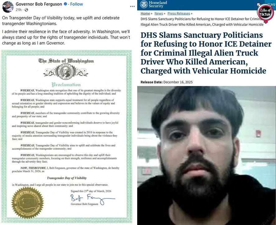 Democrat Washington Governor Bob Ferguson signed a "Trans Day of Visibility Proclamation" to acknowledge "violence" against trans people