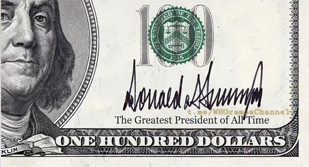 Got a sneak peek of Trump’s new signature on the $100 bill…