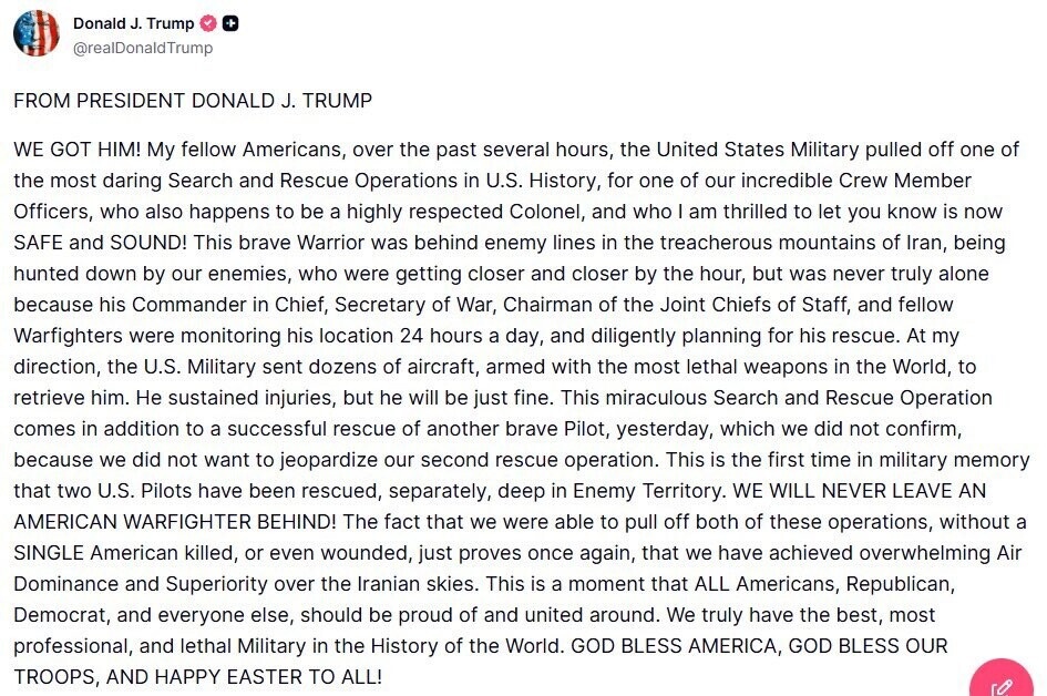 BREAKING: The downed pilot has been FOUND SAFE AND SOUND!