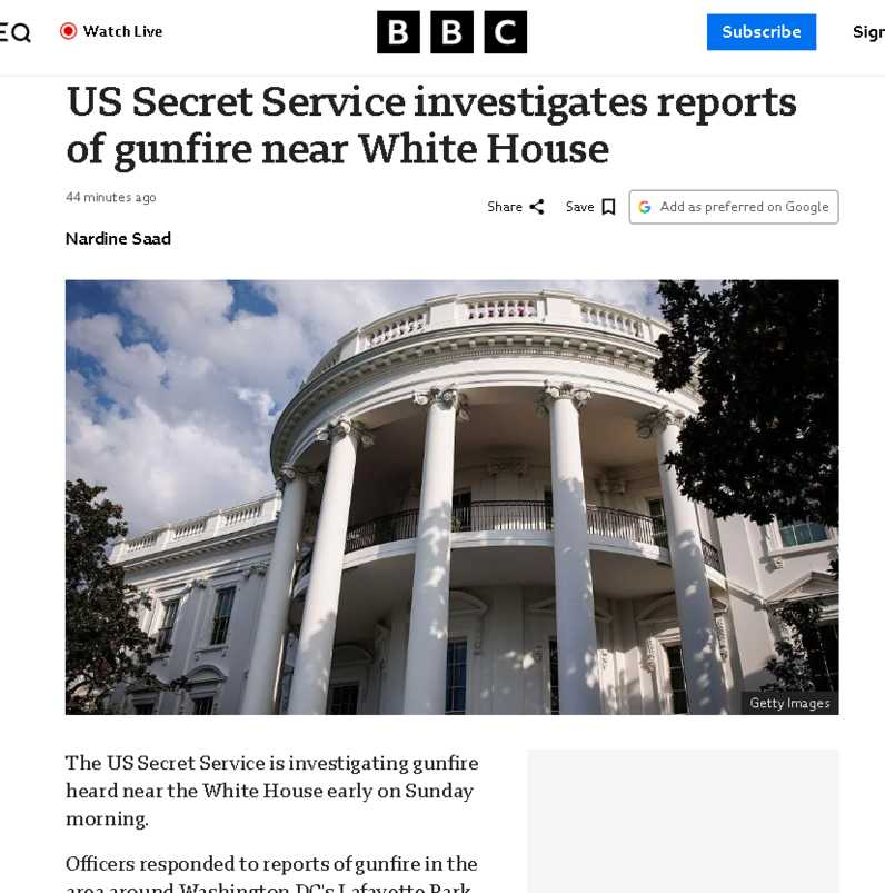 Officers responded to reports of gunfire in the area around Washington DC's Lafayette Park just after midnight local time (04:00 GMT) and conducted a search of the park, just north of the president's residence, and the surrounding area, the agency said.
