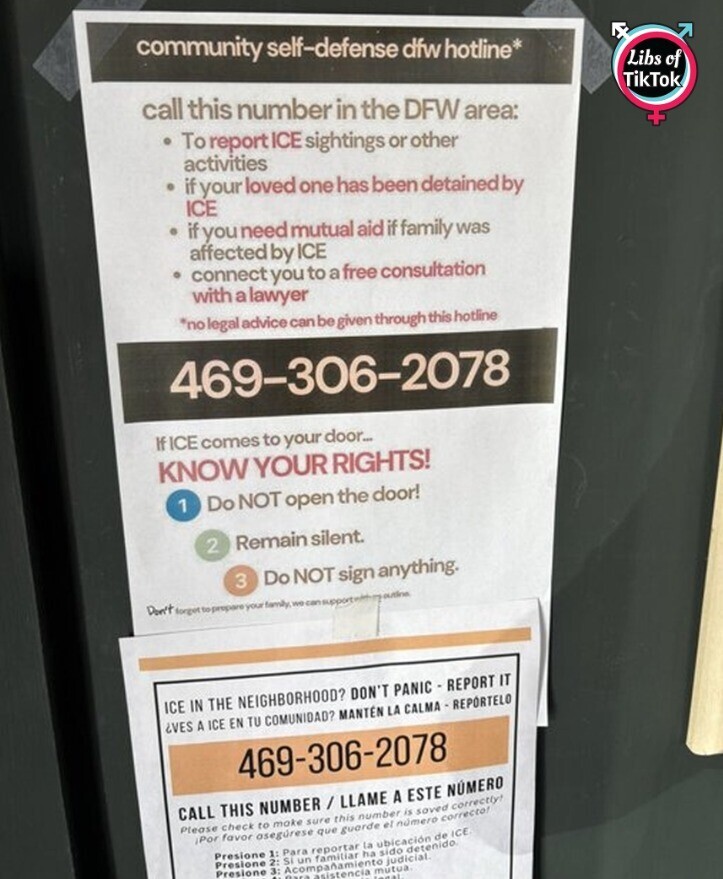 INBOX: Hemlock Fox, a bar in Denton, Texas, reportedly posted "community self-defense hotline" flyers instructing people to report ICE agents and help illegals avoid ICE arrest and deportation.