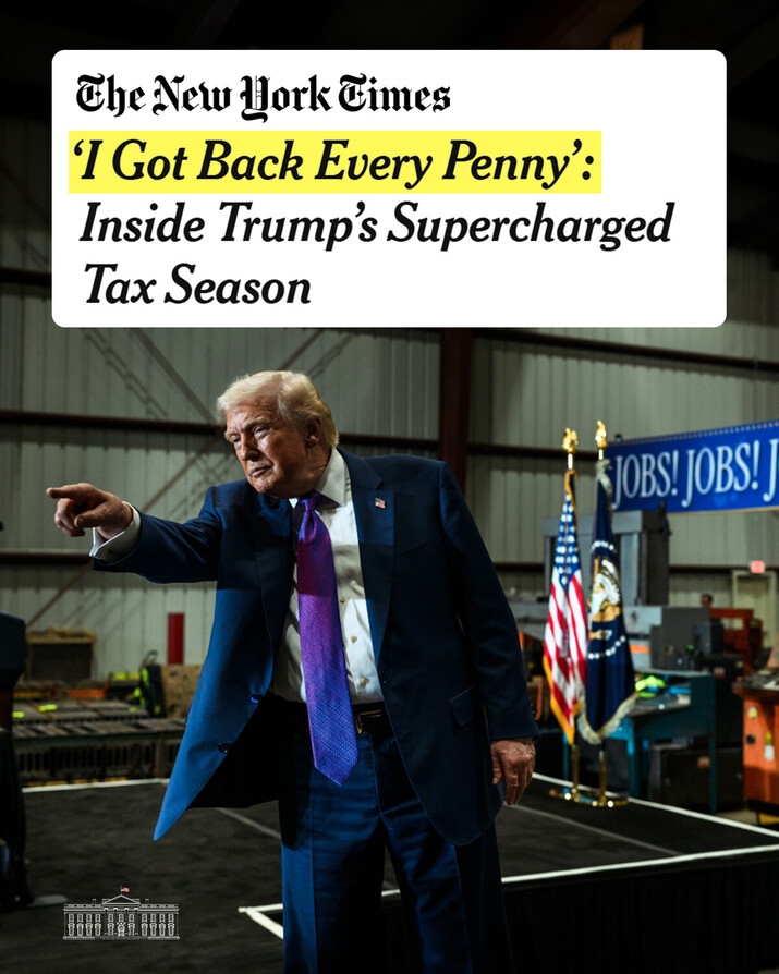 TAX SEASON 💰 ‘I Got Back Every Penny’: Inside Trump’s Supercharged Tax Season https://truthsocial.com/@WhiteHouse/116364116376490904