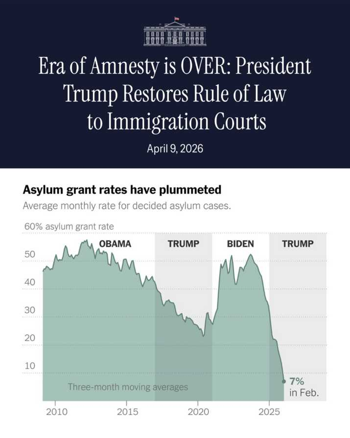 After 4 years of Biden-era chaos that turned immigration courts into amnesty factories for unvetted illegals, the Trump Admin is finally fixing the broken system.