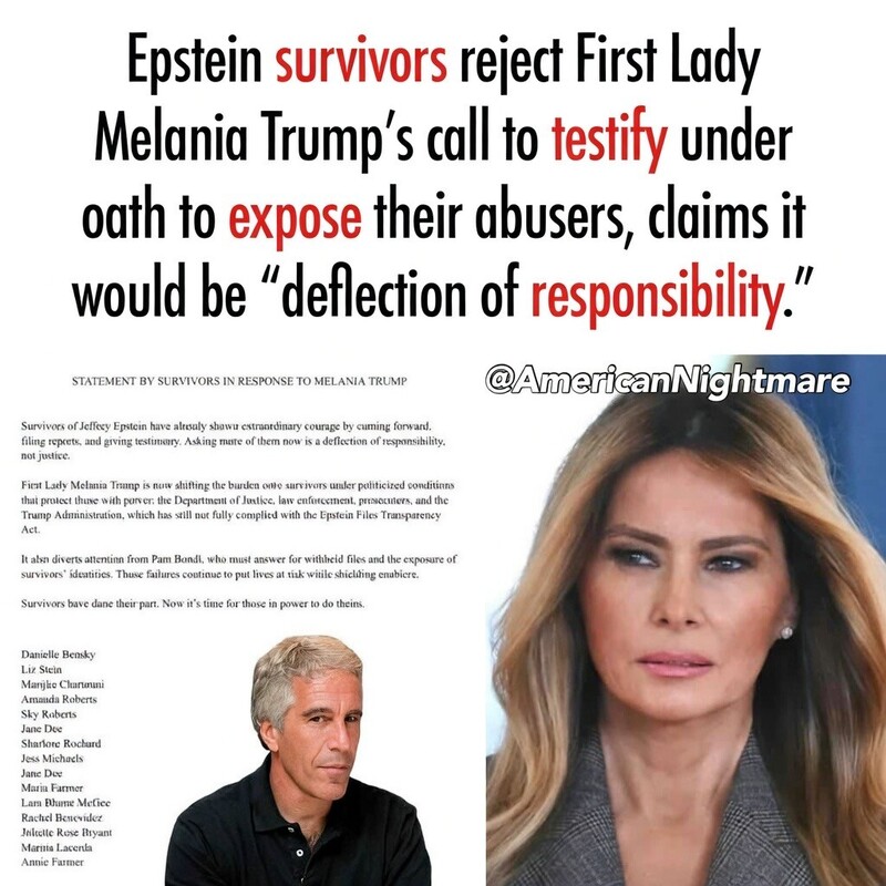 And now Melania Trump calls for testimony under oath, and suddenly it’s “deflection”? No—it’s the one place where claims actually get tested.
